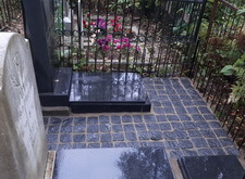 Наземное покрытие могилы гранитной брусчаткой,
