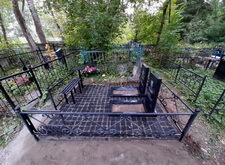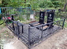 В данном заказе нам предстояло полностью благоустроить место захоронения. Клиент пожелал заменить на участке всё, кроме ограждения. Нам предстояло изготовить два классических гранитных памятника с прямоугольными цветниками, а также выложить территорию могилы брусчаткой. Первым делом мы приехали на кладбище и оценили исходное состояние места захоронения: оно поросло сорняком, а потому выглядело заброшенным.
